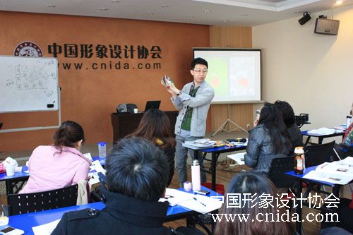 今天,注册形象设计班主讲的内容是用大小、动静、直曲来定位着装风格,课堂中老师讲过要领之后,学员们自己现场进行实战演练。