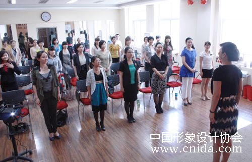 2012年5月17日,下午4点下课后休息片刻,中国形象设计协会理事、中国音乐家协会爱乐合唱团主持人翟珺老师的发声课程开始了。此课程为选修课,但大家在一整天课程后热情丝毫未减,都留下来听。如何能让上课时声音洪亮又保护好嗓子,对于讲师,科学合理的发声是非常重要的。很多位学员在自我介绍时表示,对这堂课充满期待。