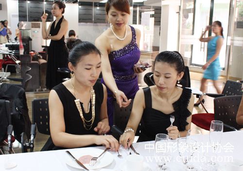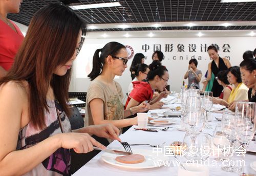 李昀老师讲解和示范后,学员们立即动手练习使用刀叉