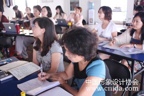 2012年8月3日,今天是全国评委研修班的第三天,韩久九老师带领各位时尚评委做专业能力提升,包括整体审美的思维观建立、流行元素的应用技巧、时尚设计风格的定位方法、时尚创意的类型与鉴赏。在讲解了色彩体系的发展时韩久九老师强调:评委应该具备很强的思维组织能力。大家在课程中也做了相应的练习。