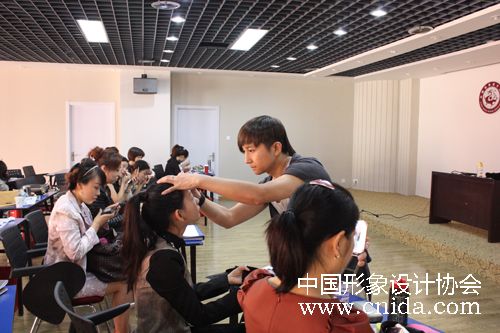2012年9月13日,今天是注册形象设计师课程的第3天,路平老师与大家分享了化妆发型在形象管理中的综合运用、不同场合适合的妆容发型以及快速化妆的方法。协会课程都是以互动模式进行,课程中学员们会实际上手操作练习,老师一一做指导。
