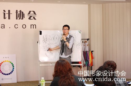 2012年9月14日是注册形象设计师专业班第四天,主讲嘉宾是中国形象设计协会讲师团主任讲师、享誉国内外的形象管理专家韩久九。今天他为来自全国各地的形象设计师分享国际形象设计体系的综合运用。韩久九老师课程生动丰富逻辑条理清晰,广受学员欢迎,通过韩久九老师对形色质的转换方法的梳理,学员们更加清晰的理解和掌握了形象管理的规律。